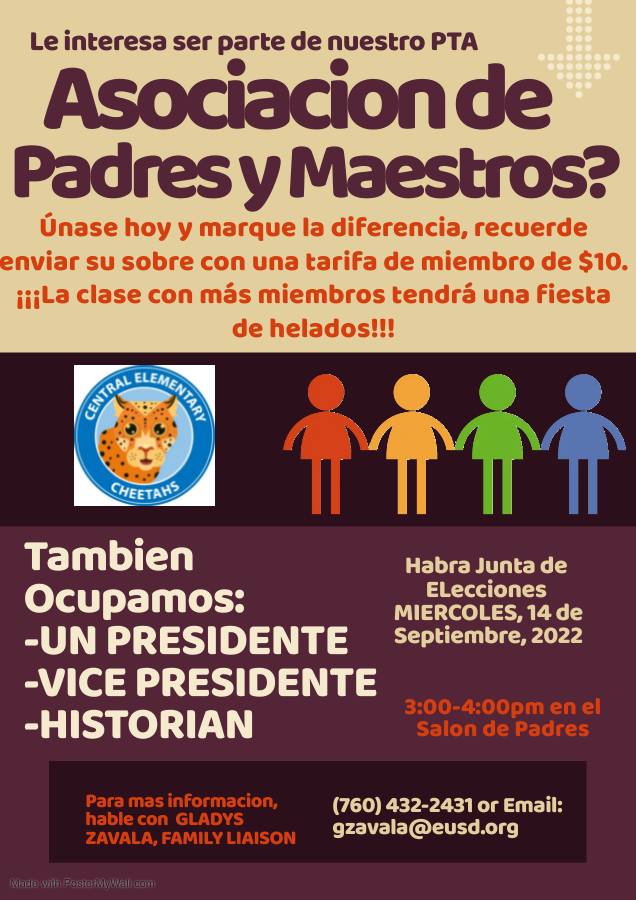 Este mensaje es para informarle que hay espacio disponible en el programa YMCA antes/después de la escuela. Será por orden de llegada, llame al 760-533-4082 para obtener información sobre el proceso de solicitud. Deje un mensaje detallado con su nombre y el nombre de su estudiante para que podamos comunicarnos con usted. Atendemos a estudiantes desde TK hasta 5to grado. Muchas gracias.